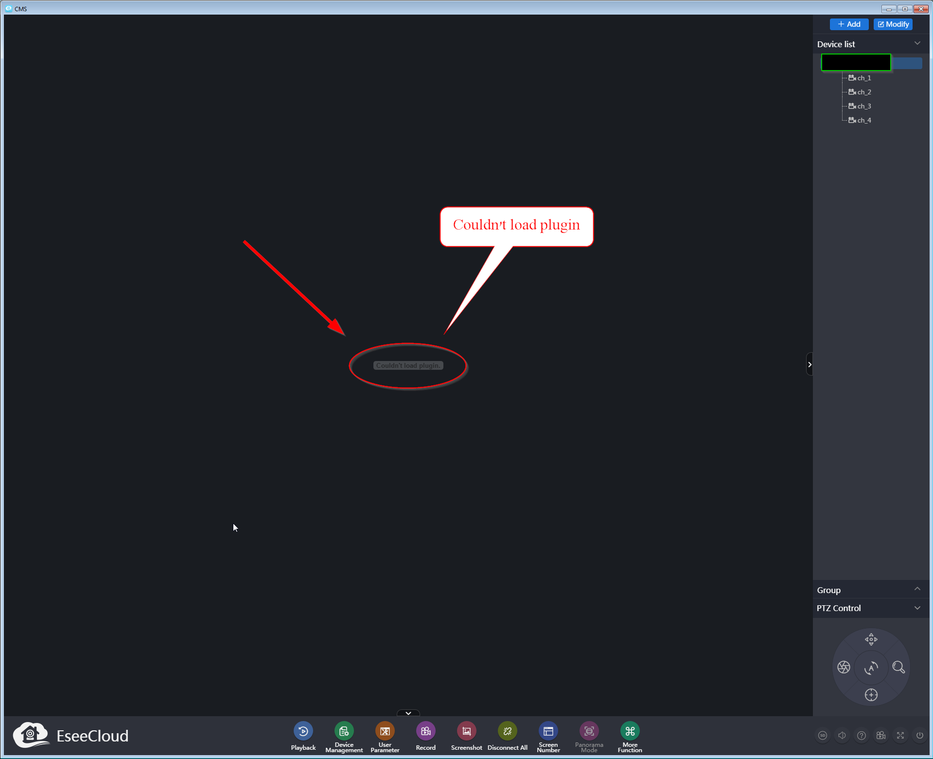 我会解释我的个人问题让你明白我为什么要问。我正在尝试使用一个名为"EseeCloud“的软件来查看和下载我的Jennov安全摄像头的视频。我可以连接到相机,但不能查看或下载,得到一个错误“无法加载插件”。(见截图)。公司支助小组的答复如下: