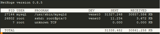 我已经使用VNStat和Nethogs来尝试调试,但我无法理解。由于某种原因,MySQL正在将一些数据传输回服务器A,这使我花费了大量的BW。