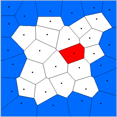 我假设这些细胞是不相关的。一切都取决于细胞中的区分点。找出到原点的距离是一种计算,不能改进。所以你的问题减少到:你有红点和白点(坚持你的配色方案),你想找到最接近每个白点的蓝色点。