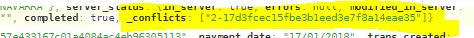 GET docid?conflicts=true request获取文档;call GET docid?rev=xxx中的每个成员。如果在此阶段出现任何错误,请从步骤1重新启动。(可能会有其他人已经解决了此冲突,并删除了该rev)。红宝石上的版本