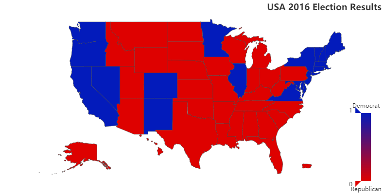 将visualMap设置为0到1,使其为二进制,并将每个值分配给民主党或共和党。