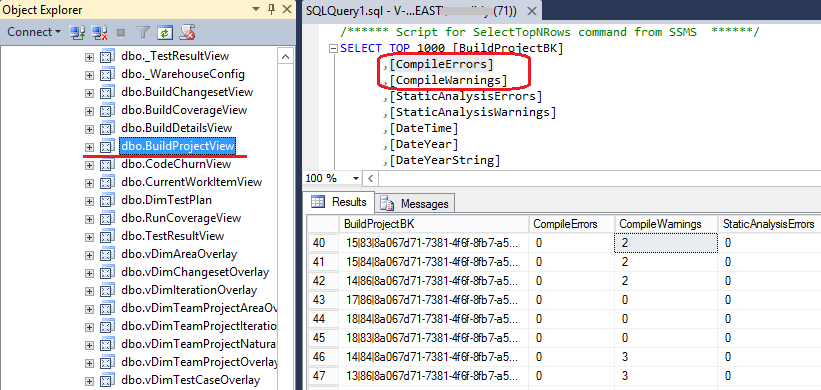 根据这一点:https://learn.microsoft.com/en-us/vsts/report/sql-reports/table-reference-build-project编译错误保存在一个名为FactBuildProject的事实表中。
