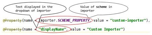 自定义导入程序的importData()方法从此配置中获取其参数的值。因此,您需要在对话框中指定这些属性: