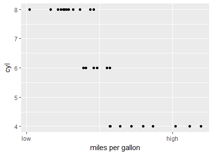 ggplot(mtcars, aes(mpg, cyl)) + geom_point() +