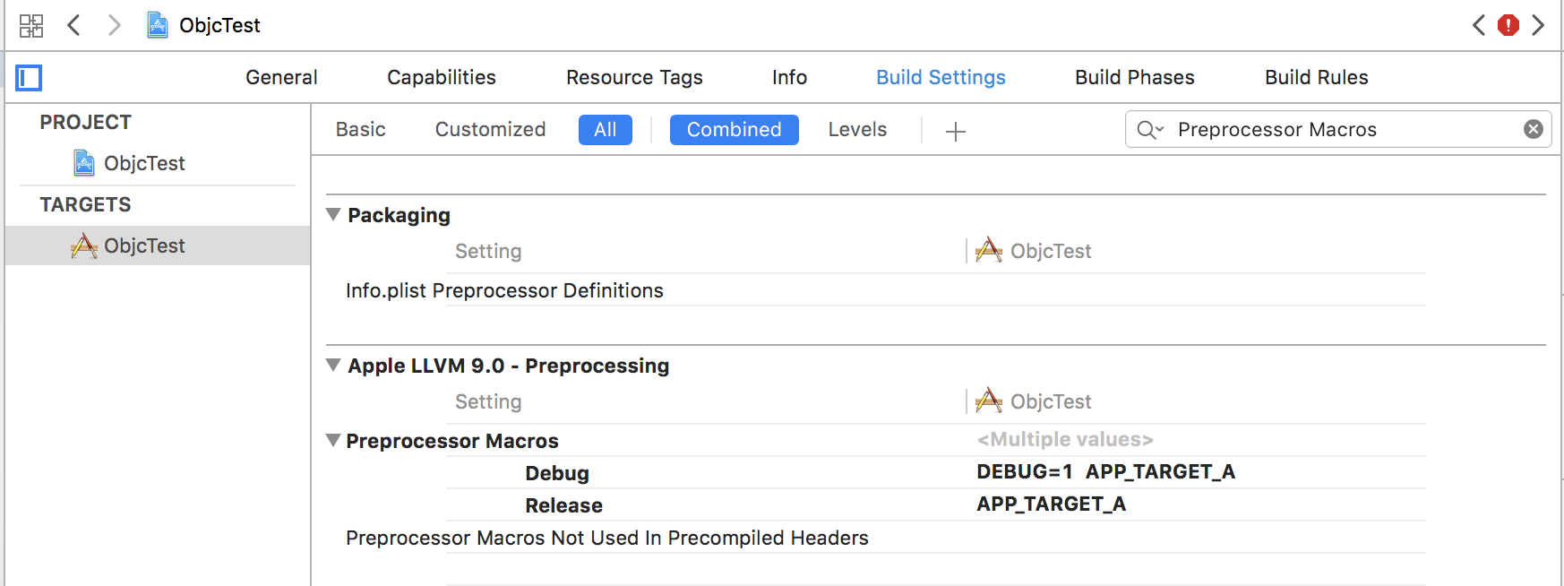 Use可以为每个目标定义Preprocessor Macros。