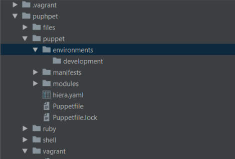转到puphpet/puppet目录并创建一个新目录,并将其命名为environments,并在environments目录中创建另一个目录并将其命名为development