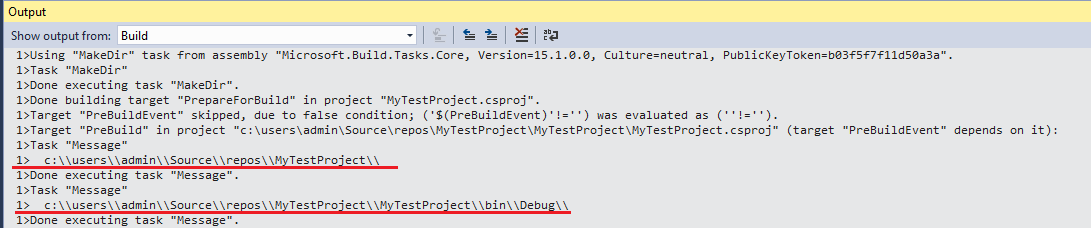 </PropertyGroup>然后我使用一个目标输出EscapedSolutionDir和EscapedTargetDir中的转义值,这两个值都被转义了: