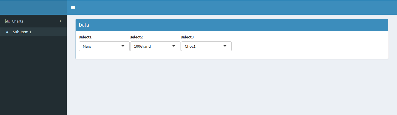 下面的R脚本创建了三个selectInputs,因此每个selectInput的值依赖于前一个selectInput的输入值。例如,在脚本中的数据中,"value“列值取决于"Candy”列,"Candy“列值取决于”品牌“。问题是,无论我在“品牌”栏中选择"Mars“还是"Netle”值,对应的"Candy“值”100 Brand“对两者都是相同的,因此,由于selectInput读取的值相同,所以我看不到值列中的变化。请帮我解决这个问题,也请确保脚本不会变慢。谢谢。