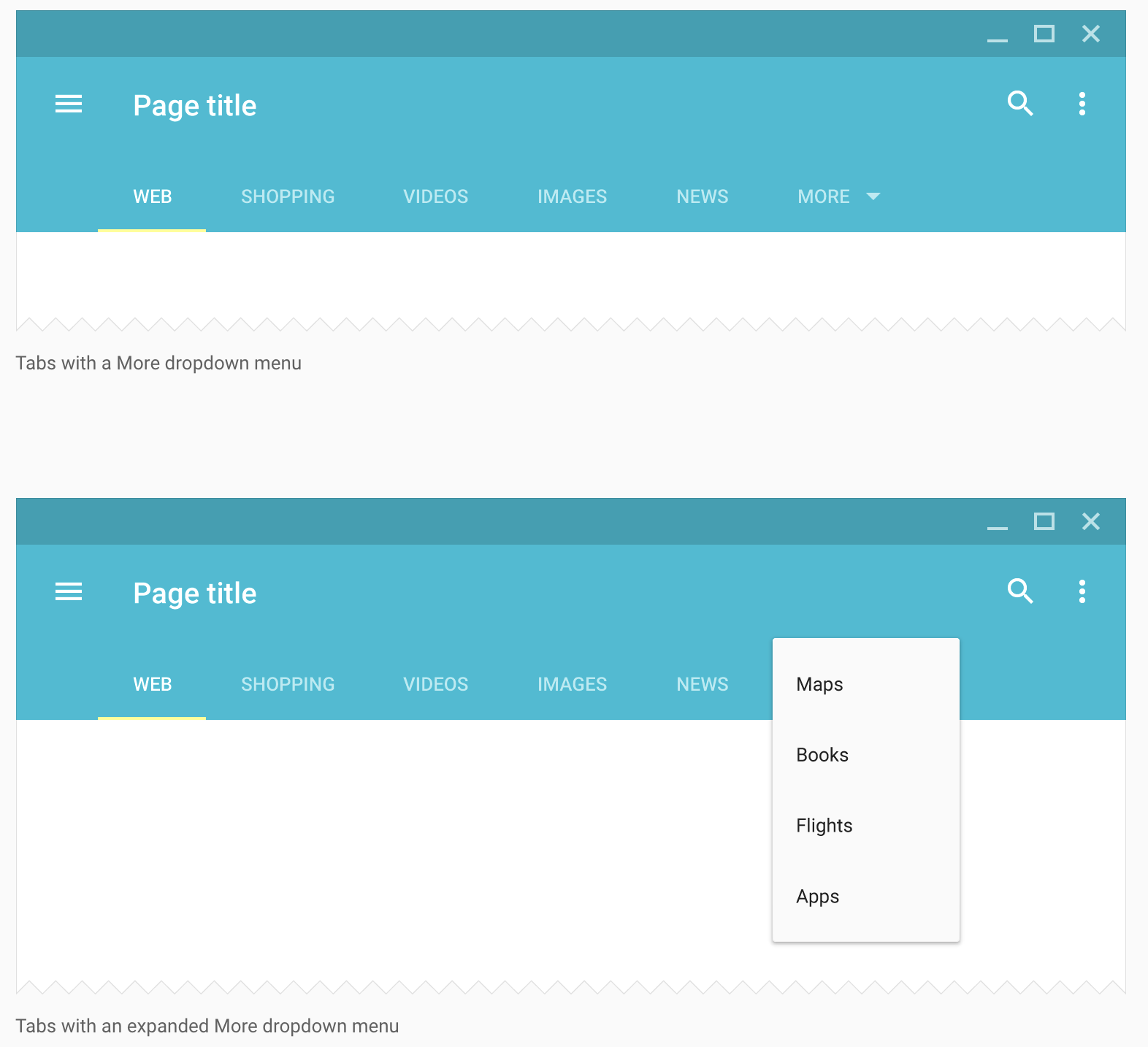 我希望实现一个Tabs组件,其中包含用于桌面视图的大量(7-9) Tab组件。当可滚动选项卡超过Tabs上的视口宽度时,我不想使用它,而是希望额外的Tab项在More下拉菜单中,就像下面的docs示例显示的那样: