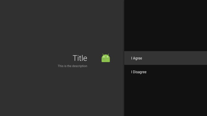 我尝试在我的电视应用程序中使用AlertDialog,但是它引发了一个错误,就是在应用程序中设置了不正确的Theme。另外,我不认为这些对话框是可访问性友好的。