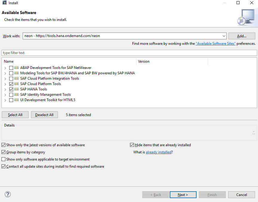 并配置eclipse以获取从此处连接到云的包:https://tools.hana.ondemand.com/neon