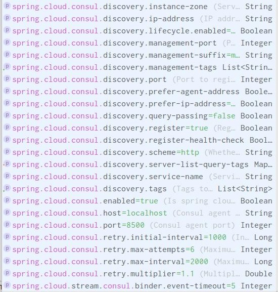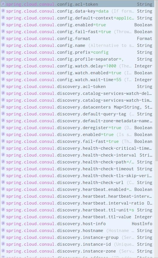 因此,我很好奇,当springboot应用程序与领事集成时,是否只有这些配置可用。我想深入潜水,谁能让我知道其他可用的资产吗?
