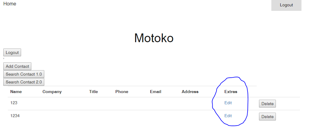 试图制作一个crud函数/联系人列表。用户在登录后会被带到此页面: