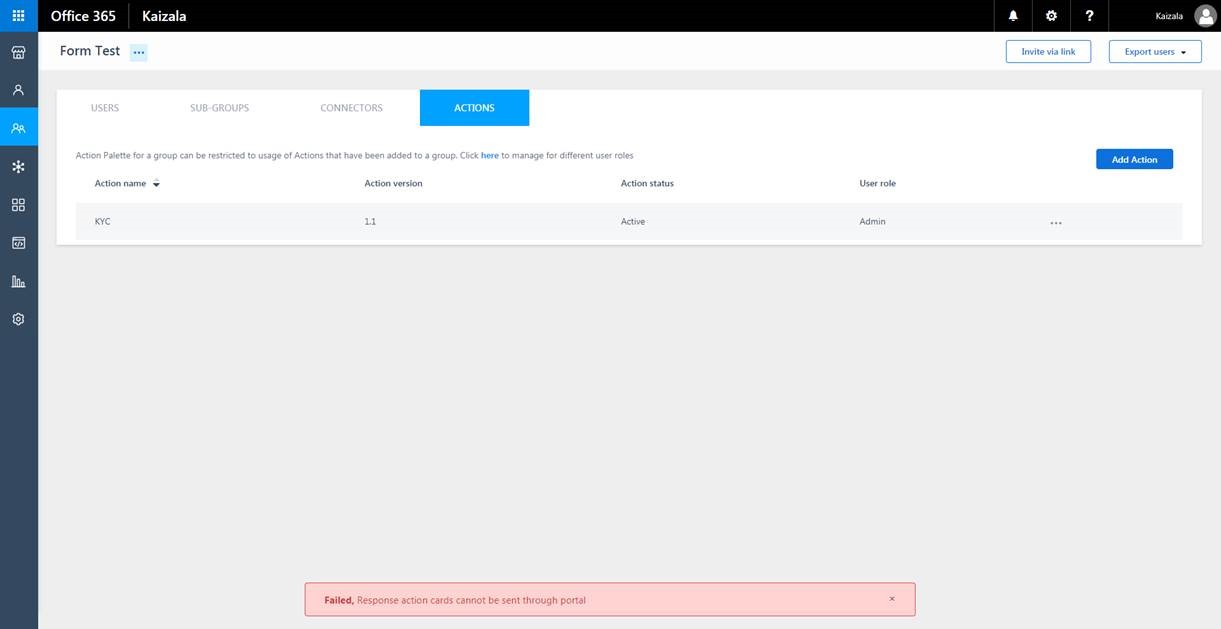 我已经为我的部门用户创建了一个表单来收集他们的数据,当我为该组共享表单时,它显示了错误:失败,响应操作卡不能通过门户发送。