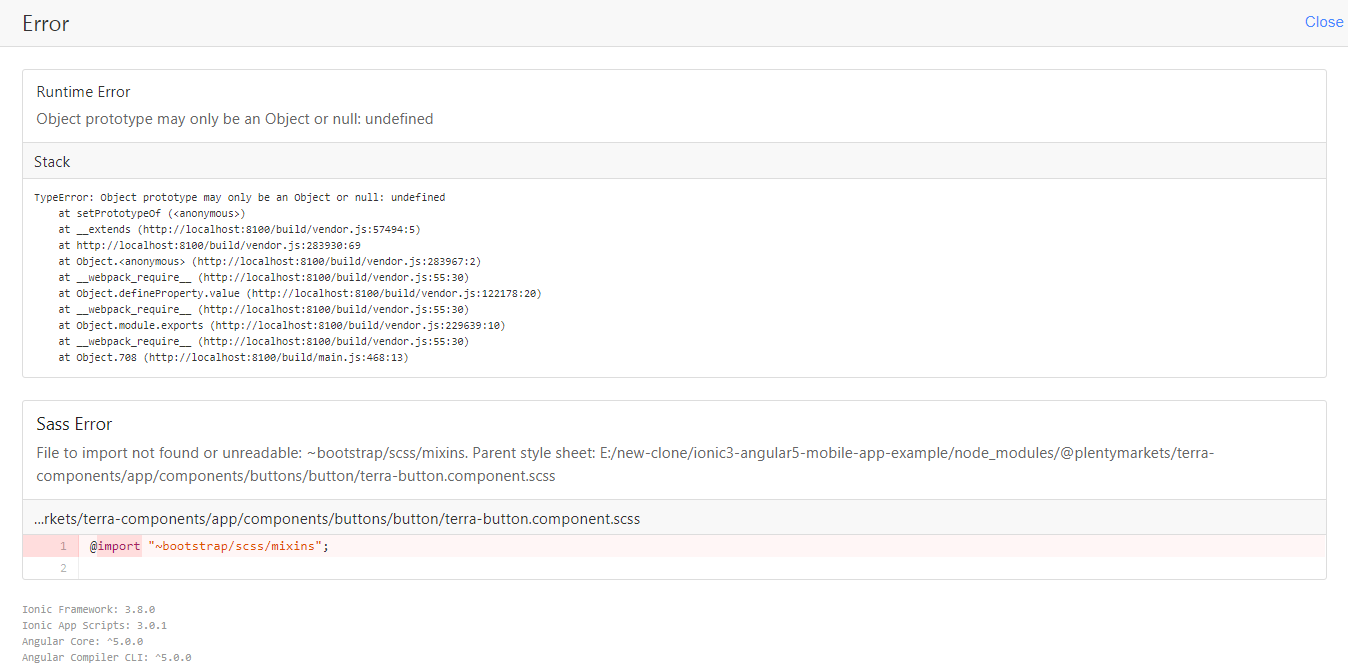 “发布对象原型可能只是一个对象或null:未定义”与不使用兼容的角版本有关,您可能使用的是terra组件和版本5的角。将角度版本降为4,并检查是否仍然存在错误。