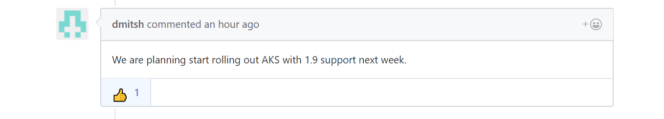 我一直在关注GitHub - https://github.com/Azure/AKS/issues/103上的AKS问题,用户似乎可以通过CLI将AKS升级到1.9.1。