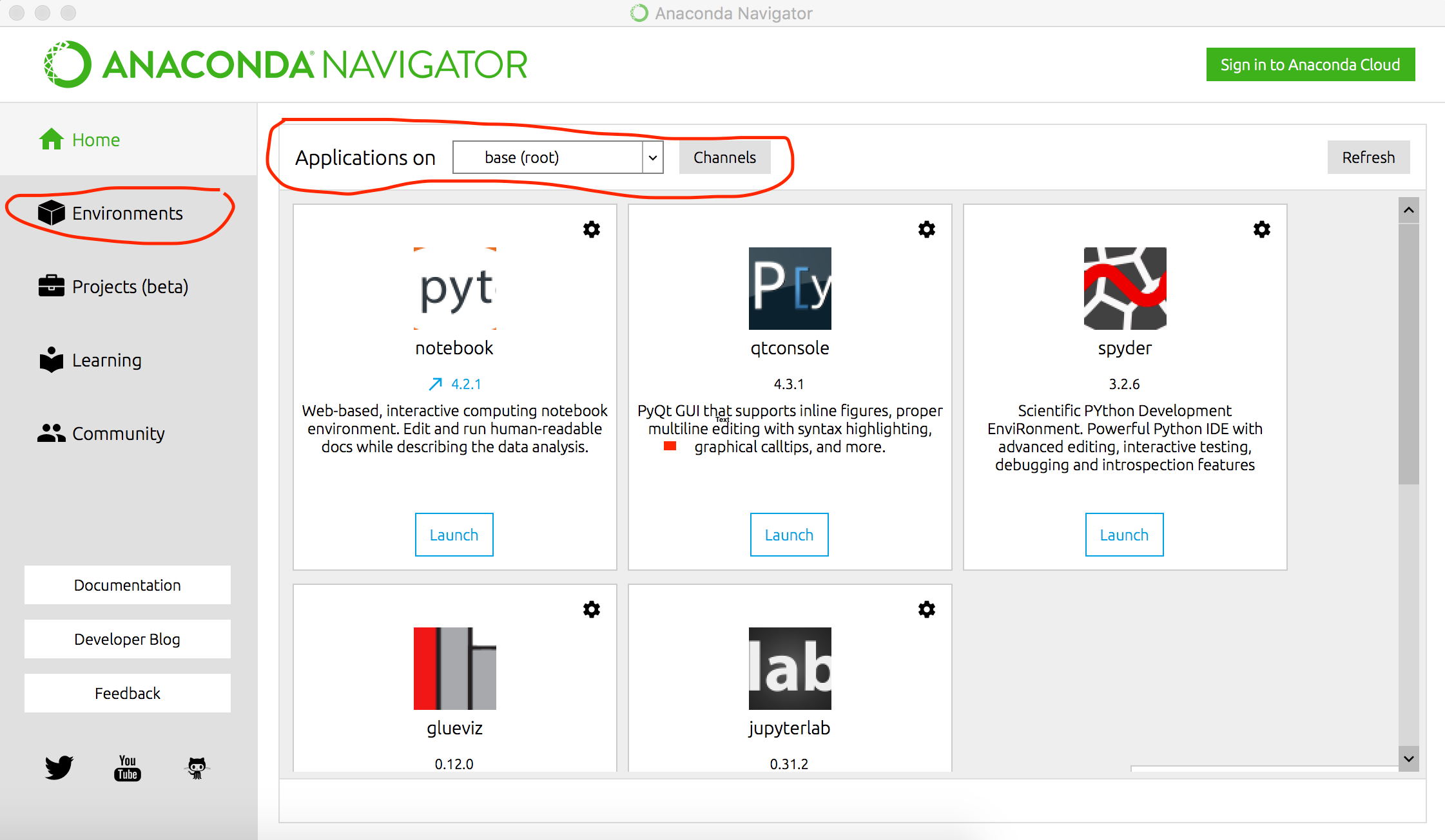 “基础(根)上的应用程序”也可以更改。如果没有显示这些选项,我建议您更新conda。