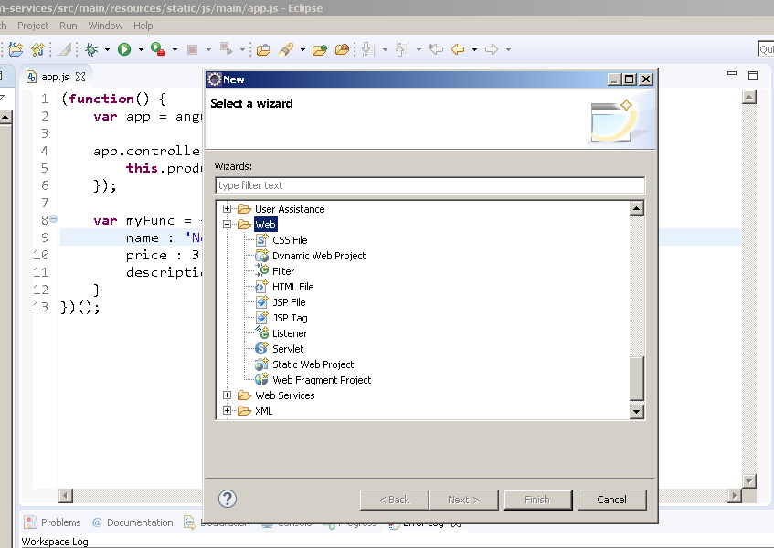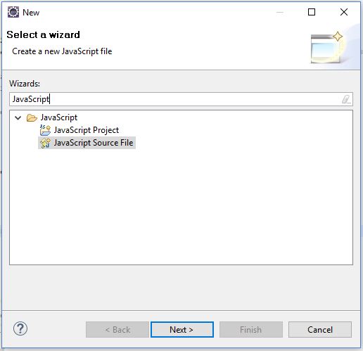 在正确的视角下,您将在新弹出对话框中的JavaScript源文件选项,右键单击您的项目或一个适当的项目文件夹(例如。WebContent)。