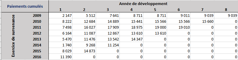 as.triangle(triangle.csv, origin="année", dev="dev", "montant")请记住,您还可以指定包名,正如@Paul在注释中指出的那样:ChainLadder::as.triangle()。