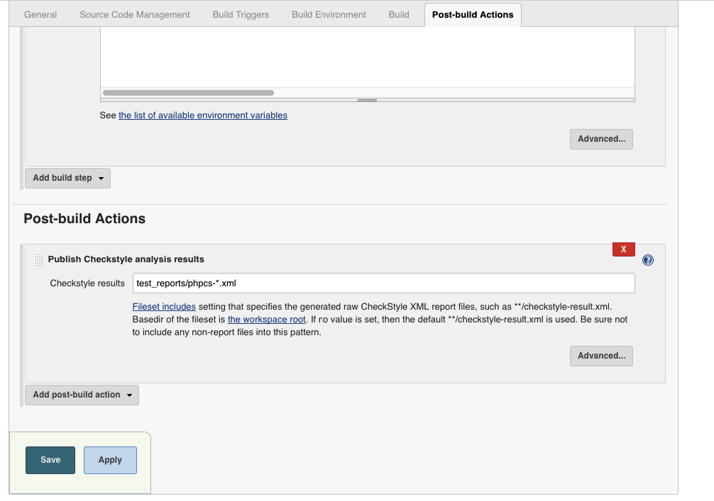 由于您正在使用管道,post生成操作将进入经典视图中“build Configuration”下配置的管道代码(即Jenkinsfile)。