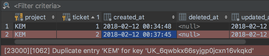 )但是正如你所看到的,这张票只是一个bigint,而不是看起来更像bigint auto_increment,不知道我在这里做了什么。这非常接近我想要的。除了票证应该自动递增(如“问题”部分中的详细内容)外,我不知道如何(或这是否是正确的地方)在项目和票证列组合之间划出一个破折号。