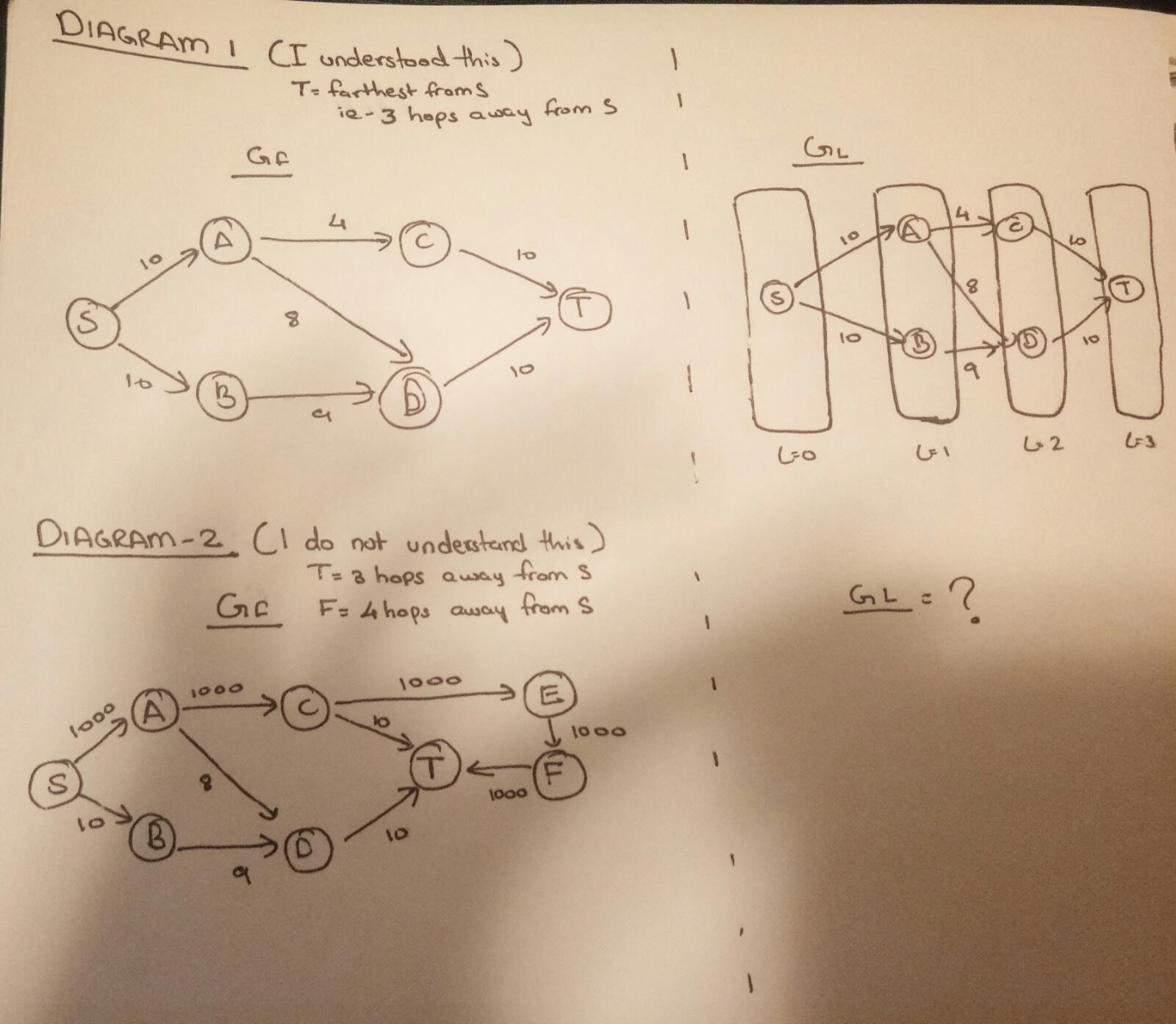 我正在阅读迪尼奇算法来解决最大流问题,该算法对给定源S和接收器T的图G说明如下: