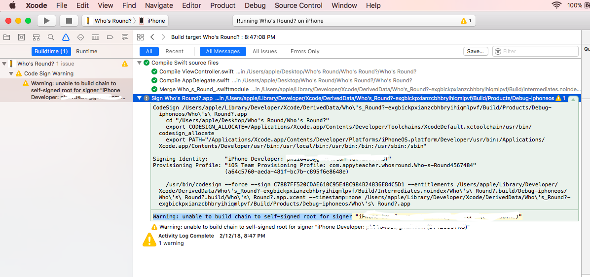 我是Xcode的新手,构建成功的应用程序安装在手机上,但退出或有白色屏幕。