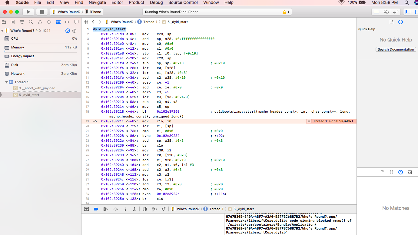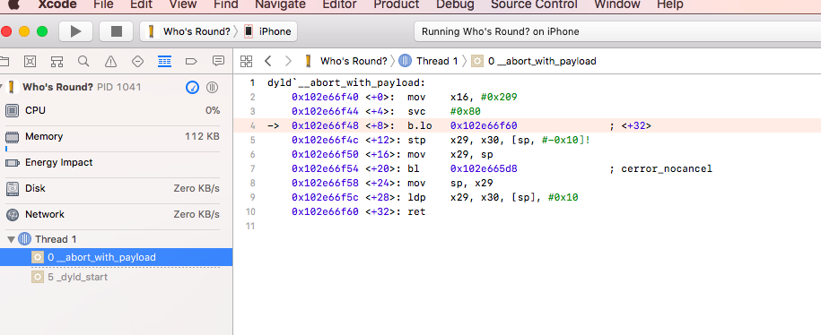 \_\_abort\_with\_payload dyld_dyld_start