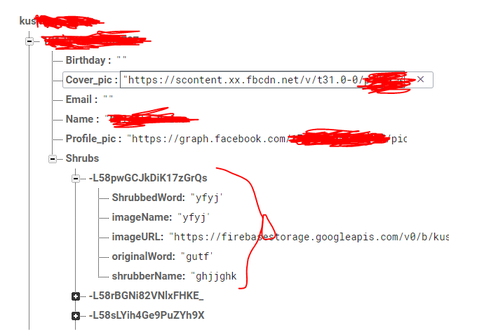 在编写child("Shrubs")之后,您的dataSnapshot将位于灌木子节点的位置。然后,您可以在push id中进行迭代,以便能够检索其中的属性和值。
