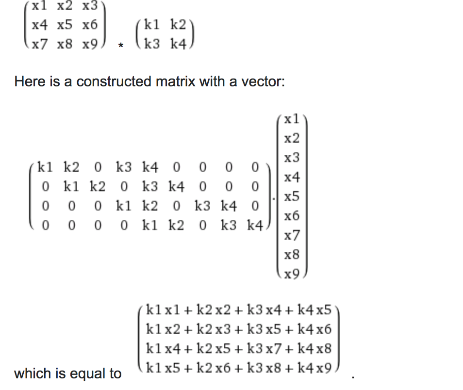 我在努力理解一些事情。到目前为止,我了解到:x是3x3矩阵,W是2x2矩阵。