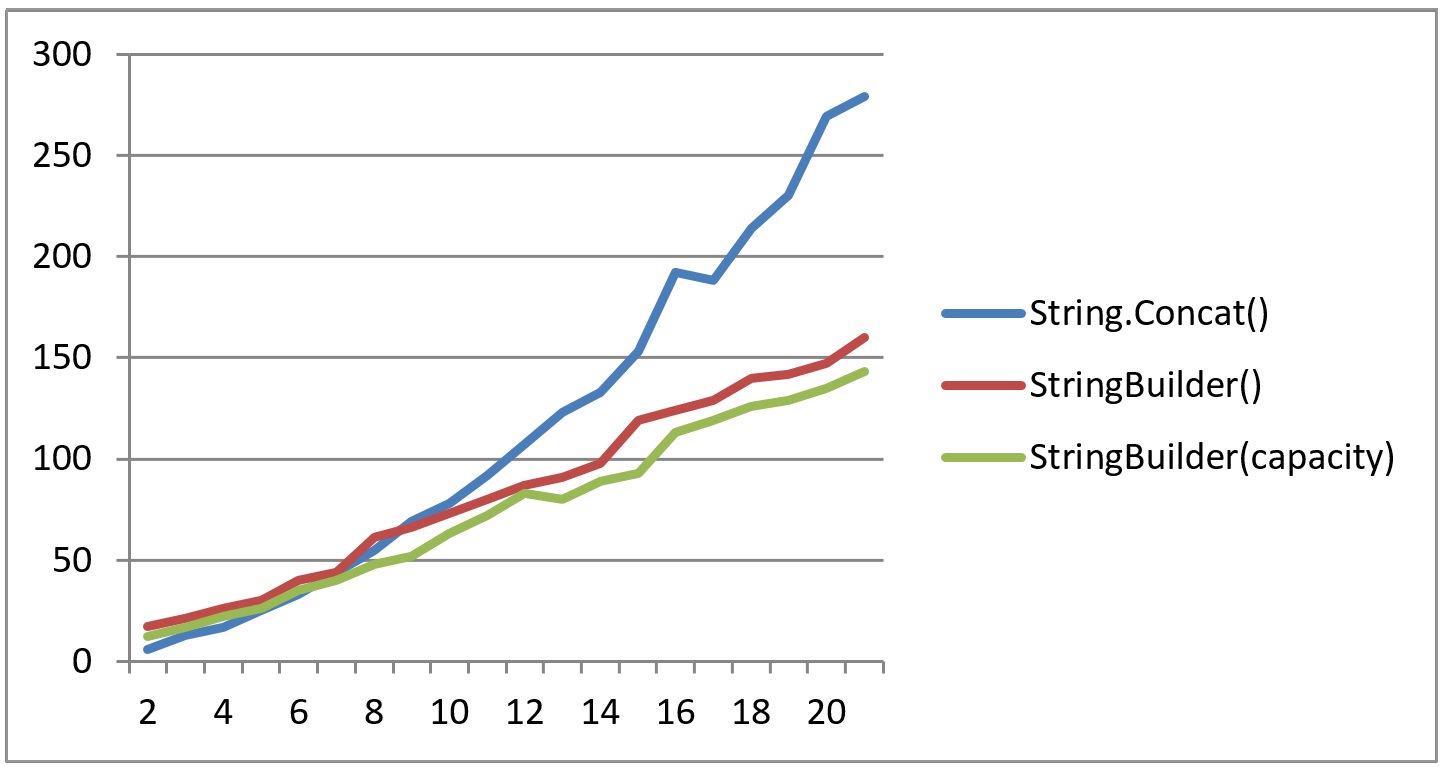 有趣的是,如果您要添加另一个度量系列,但是这次是用容量实例化它的StringBuilder,而不是StringBuilder带头,因为当StringBuilder达到当前的容量上限时会有开销。
