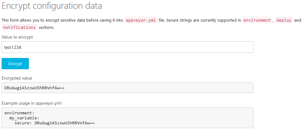 并将该加密值复制到appveyor.xml文件中。