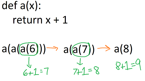z = a(y) # returns 9在这两种情况下,函数的结果都使用für下一个函数调用,这个结果用于下一个函数调用。