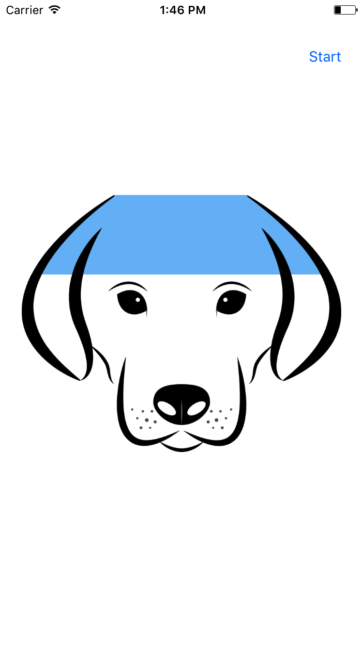对于这张图片,我试着画了一个CAShape图层,但它似乎是一个很难的形状,像我这样的新手有效地画。当我意识到我将无法在狗后面设置一层不同的颜色来向下移动,因为屏幕也会改变颜色,我放弃了使用这个选项的所有希望。