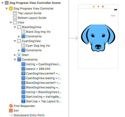 好的,使用McDonal_11的答案,我已经设法让progressView工作了,但是,我仍然遇到了一些问题。我不能在progressView上添加任何东西,它只是覆盖了下面的所有东西,在狗开始将它的动画变成一只青色的狗之前,有一个短暂的闪光整个青色狗的形象。