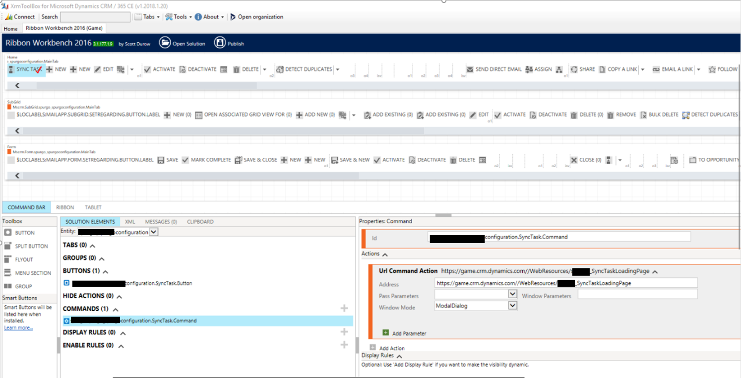 我有一个名为“同步任务”的自定义按钮添加到我的Dynamic365应用程序使用经典和新的统一界面。自定义按钮被认为是打开一个Web资源HTML页面在一个模式对话框时,单击.而是在一个新选项卡中打开它。