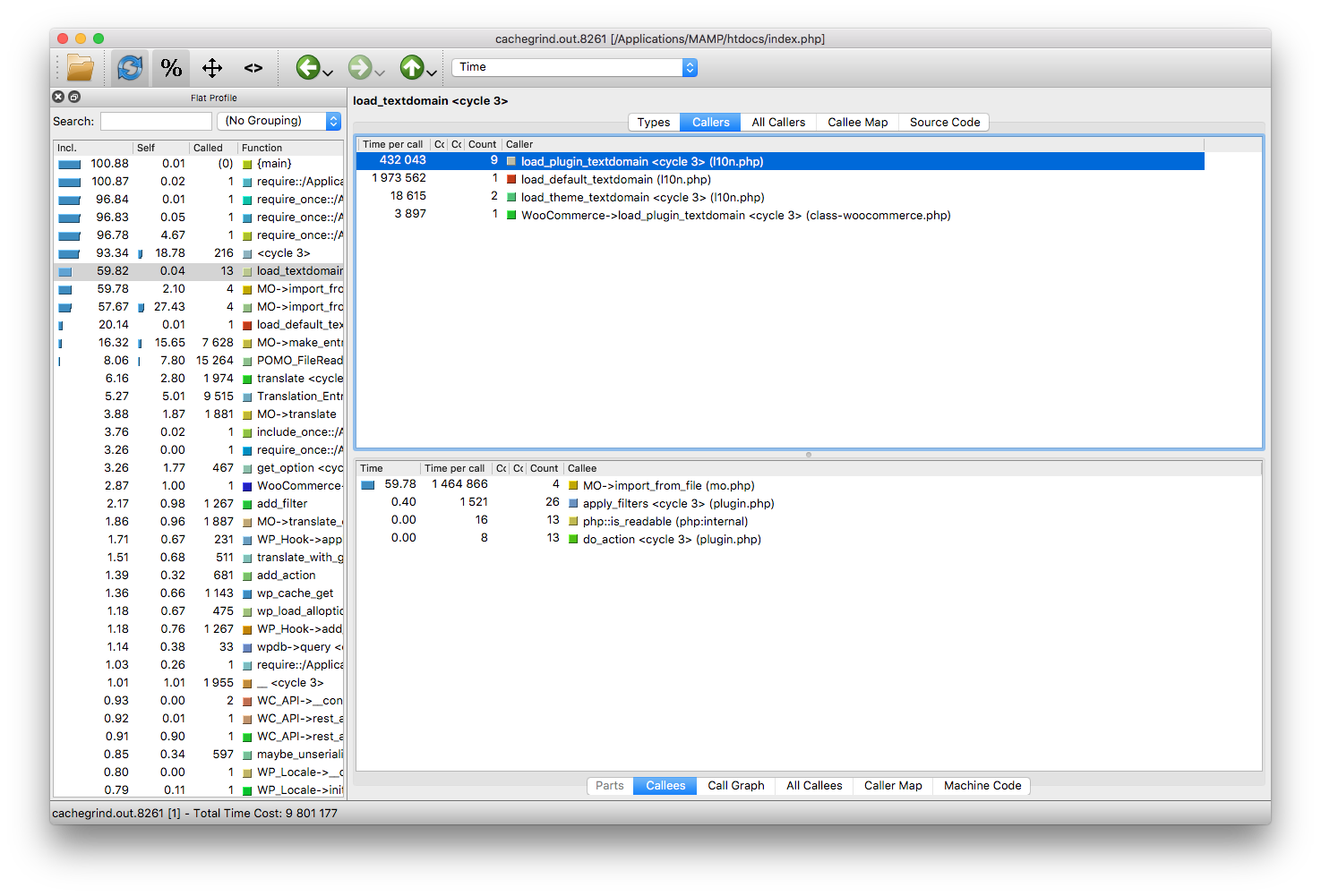 用于load_default_textdomain和load_plugin_textdomain的大量成本(使用缓存研磨的术语)在WordPress中是一种已知且被证实的低效率。其他分析器也在这个主题上达成了一致,根据具体情况,它们可以轻松地将页面加载时间增加一倍: