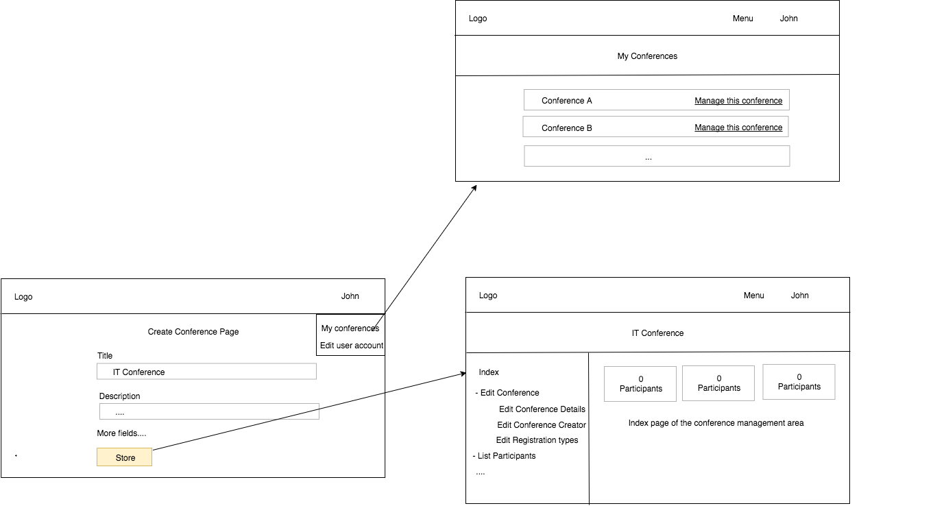 我怀疑ConferneceControler使用哪种方法,如何注册路由,以及如何组织视图文件夹中的文件,以便在创建会议后将用户重定向到特定会议的会议管理区域。也适用于当用户访问特定会议上的链接“”时的上下文(实际上,它们都是相同的上下文)。