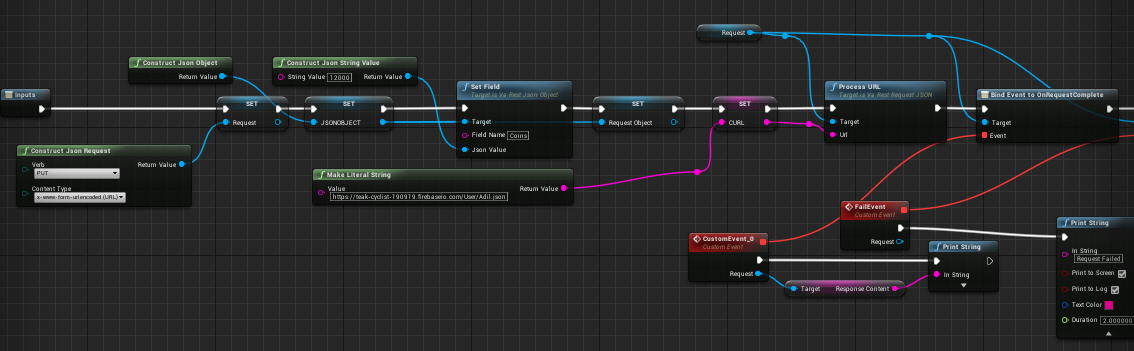 目前,我正在尝试为使用UE4.17.2蓝图开发的android移动游戏实现云保存功能。经过大量的研究,我决定为此使用Firebase,并使用VaRest插件与实时数据库进行通信。