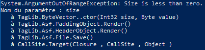我正在尝试用taglib-sharp和powershell更新歌曲元数据。它对大多数文件都很好,但是有些wma文件有错误(我可以播放这些文件)。