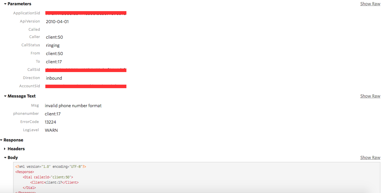 当我试图使用[TwilioVoice Call]方法从我的应用程序中传递param时,我无法在twiML应用程序上获得这些param。但是,当我试图从POSTMAN和FormData传递相同的数据时,它工作得很好,而且还能够成功地创建调用。