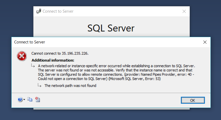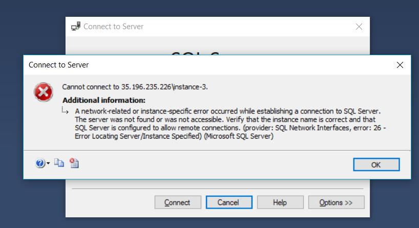 Google仪表板上有防火墙设置,我在项目上打开了端口1433、1434 TCP和UDP,没有任何改变。