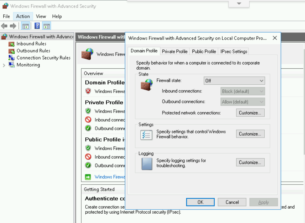 我禁用了VM上的防火墙。