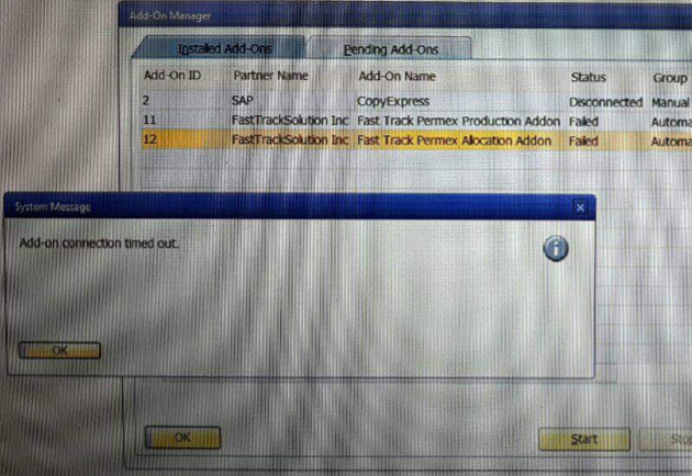 上周,一个计算机单元正在使用带有Addon的SAP B1,运行平稳,我重新编写了计算机程序以进行升级和重新安装sap,但是SAP运行良好,但无法连接到addon。有什么办法解决这个问题吗?