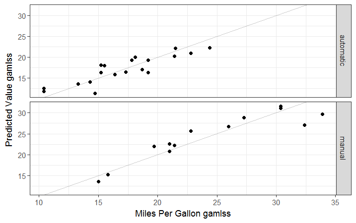 labs(x = "Miles Per Gallon gamlss", y = "Predicted Value gamlss") +