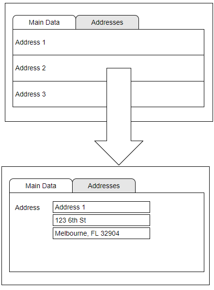 当我在列表中选择一条记录时,我希望应用程序在active选项卡中导航,如下所示:
