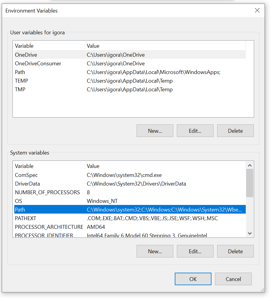 然后,在Control Panel -> System ->Advanced System Settings -> Environment Variables中的系统变量下,单击path并单击编辑。