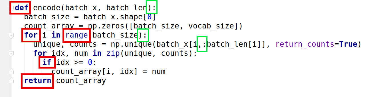 我一直在构建一个编程语言检测器,即一个代码片段分类器,作为一个更大项目的一部分。我的基线模型非常直截了当:将输入标记化,并将代码段编码为单词袋,或者,在本例中,将标记包编码,并在这些特性的基础上构建一个简单的NN。