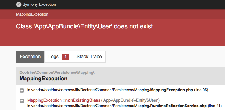 \App\Entity\User)中。它现在是所有Symfony生成器的默认行为。2.1。配置原则,如orm: mappings: AppBundle: is_bundle: true type: xml prefix: 'AppBundle\Entity' 2.2。使用php bin/console doctrine:mapping:convert annotation ./src