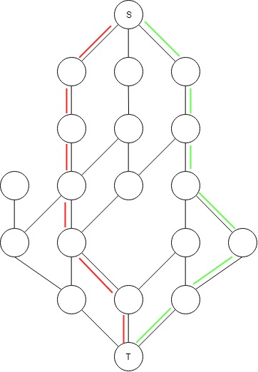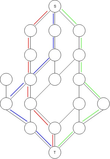 我的问题是,我有一个图,其中节点有一个容量,所有的边都是双向的,我需要找到所有的路径,使我能够最大化N个元素在图中的流动。